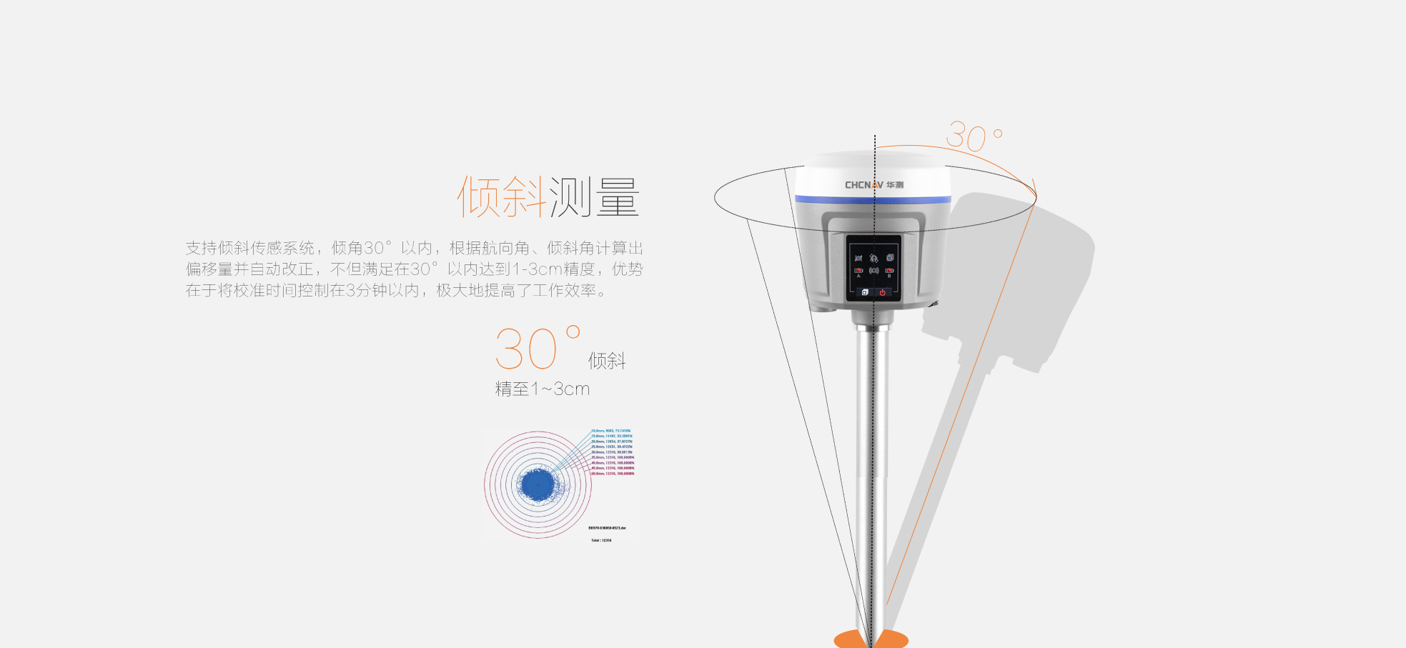 X10pro標(biāo)配支持傾斜測(cè)量系統(tǒng),支持30°以內(nèi)精度≤3cm |
